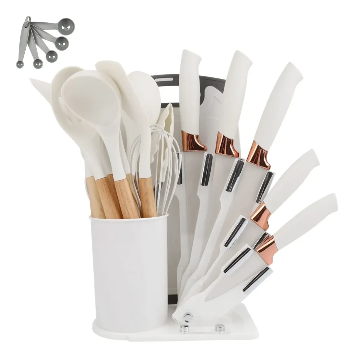 Kit 19 Utensílios De Cozinha Com Cabo De Madeira