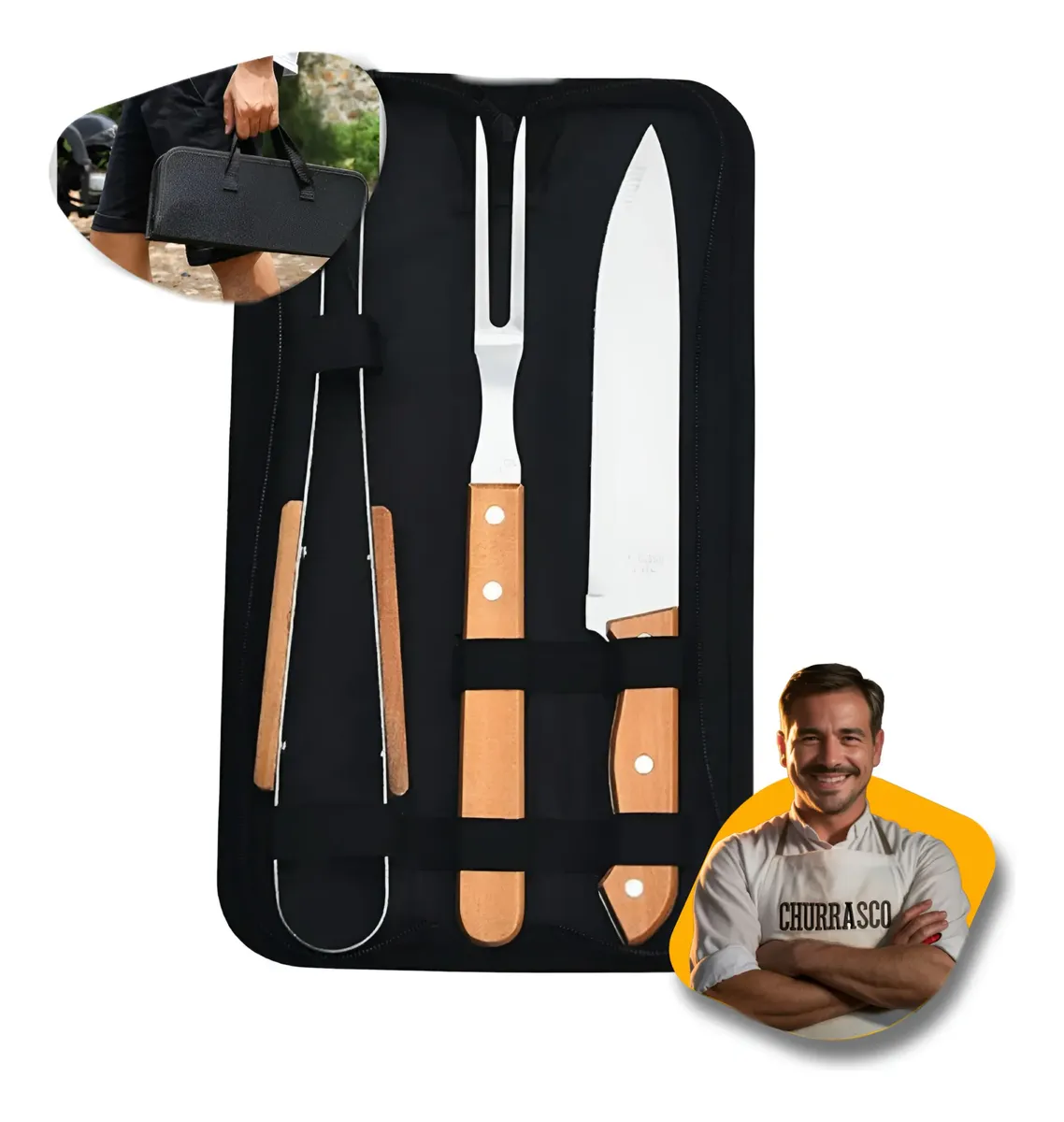 Kit Churrasco Faca Utensílios Cozinha Churrasqueiro